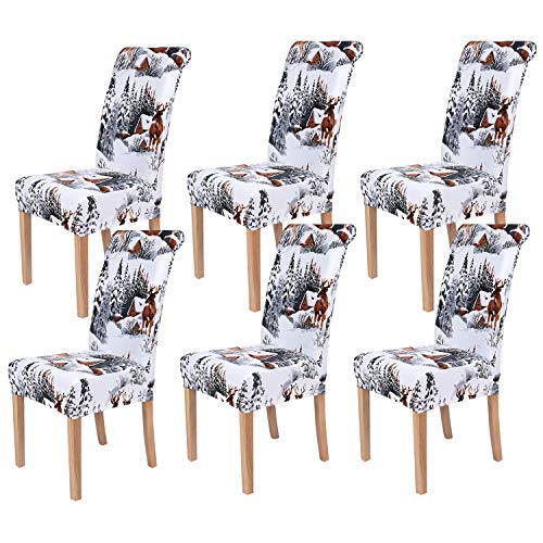 reddit smiry 6 Pack Printed Dining Chair Covers, Stretch Spandex Removable Washable Dining Chair Protector Slipcovers for Home, Kitchen, Party, Restaurant (White)